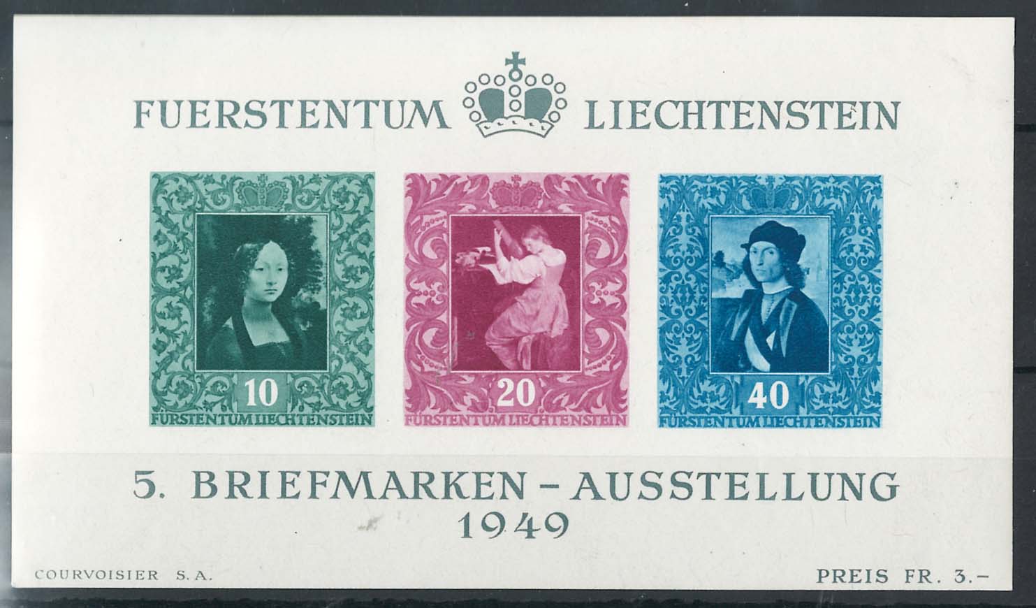 Liechtenstein 1949 Vaduz Exhibition m/sheet very fine mint sg279a cat £225 [ref: 292/833 saD/7a0435]