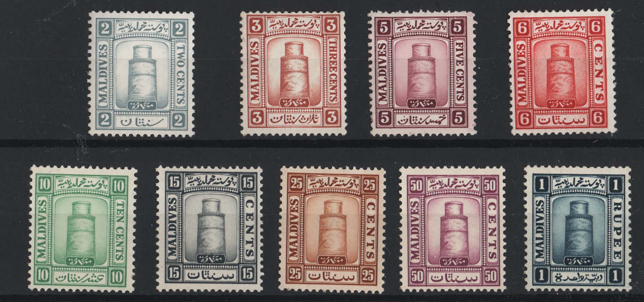 Maldives 1933 2c – 1r mint, watermark sideways (2c, 3c upright) sg11-20 ~cat £110 [ref 288/996 sa/ac0427]