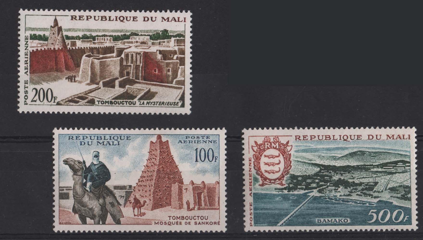 Mali 1961 set of 100f Timbuktu 200f Timbuktu , 500f Bamako. um [ref 287bb2045/sae/9q1043]