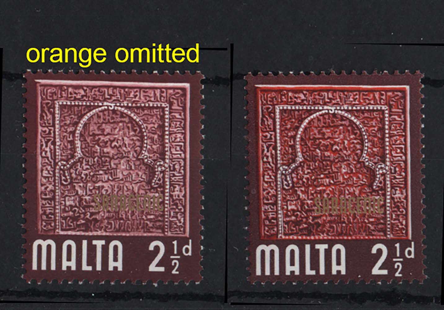 Malta 1965 2½d orange omitted um with normal sg334a c£110