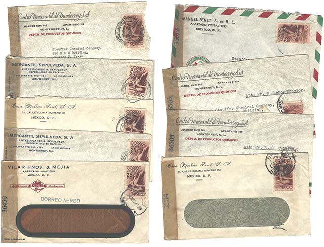 Mexico 1945 Group of 10 WW2 censored commercial airmail covers to Houston, various businesses