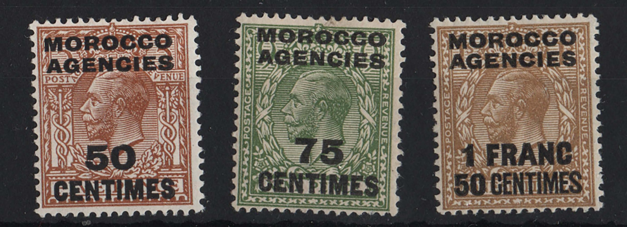 Morocco Agencies 1924 French currency 50c on 5d, 75c on 9d, 1f50 on 1s fresh m/mint sg207-8, 211 c£37+ [ref 287bb2123/sa/9y0319]