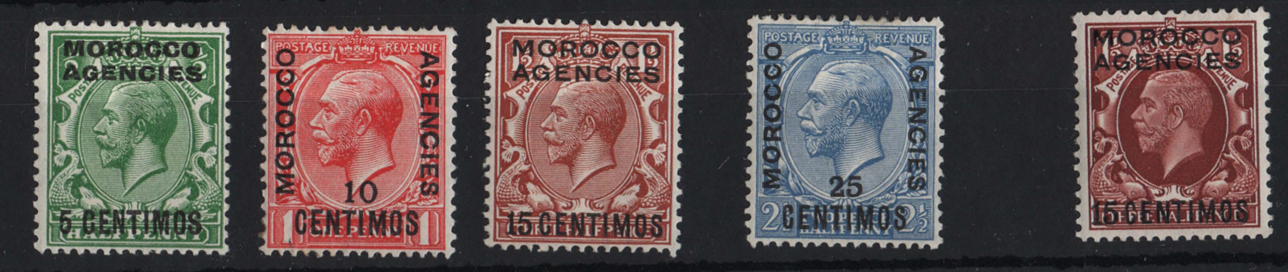 Morocco Agencies 1925 Spanish currency 5c, 10c, 15c, 25c f mint sg143-5, 147, also photogravure 15c on 1½d c£80+