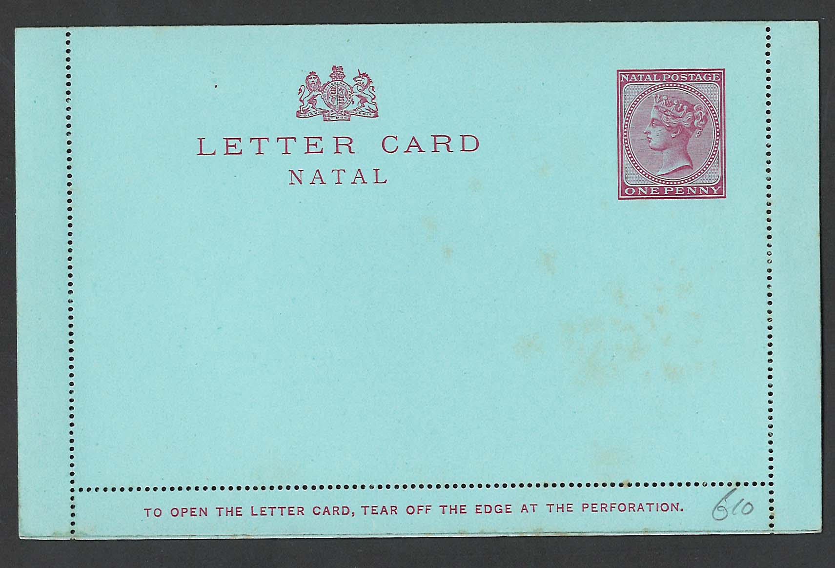 Natal 1900 1d Letter Card H&G1 g-fine unused, some foxing