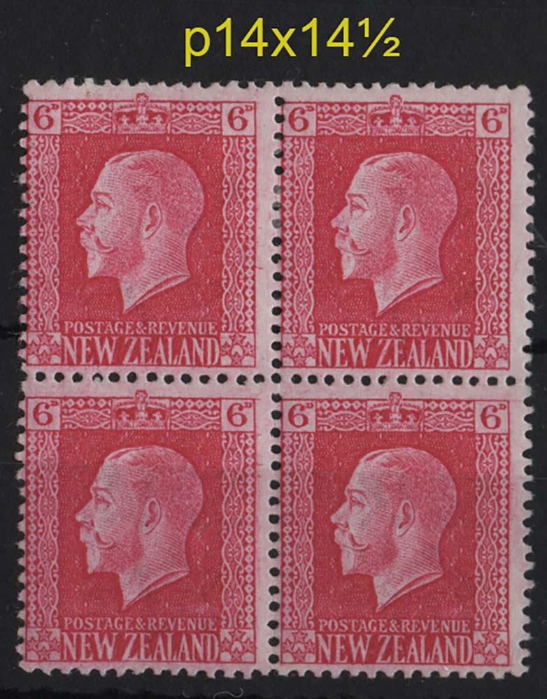 New Zealand 1915 6d carmine perf 14×14½ um blk of 4 sg425d c£100