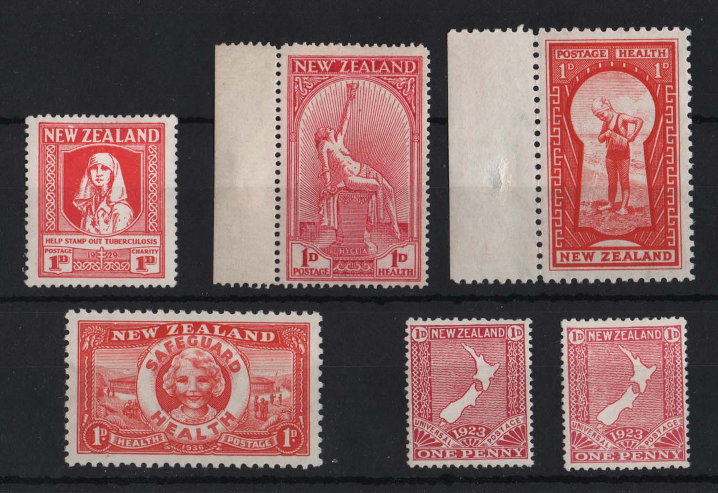 New Zealand 1923 1d Map Jones & Cowan papers 1929 Health, ditto 1932, 1935-6 f mint c£99+ [ref 287bb2166/sa/9y0328]