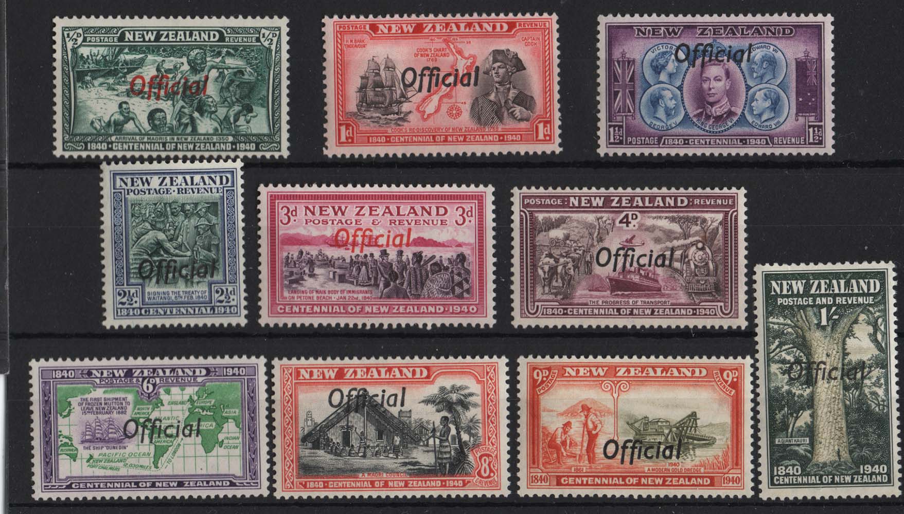 New Zealand 1940 Centenary Officials set sgO141-51 um c£225 [ref 287bb2175/sae/9q1037]