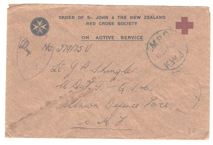 New Zealand 1945 St John/Red Cross, On Active Service censored cover, MPO KW8 cancel [ref: 292/922 bph1E/8w0529]