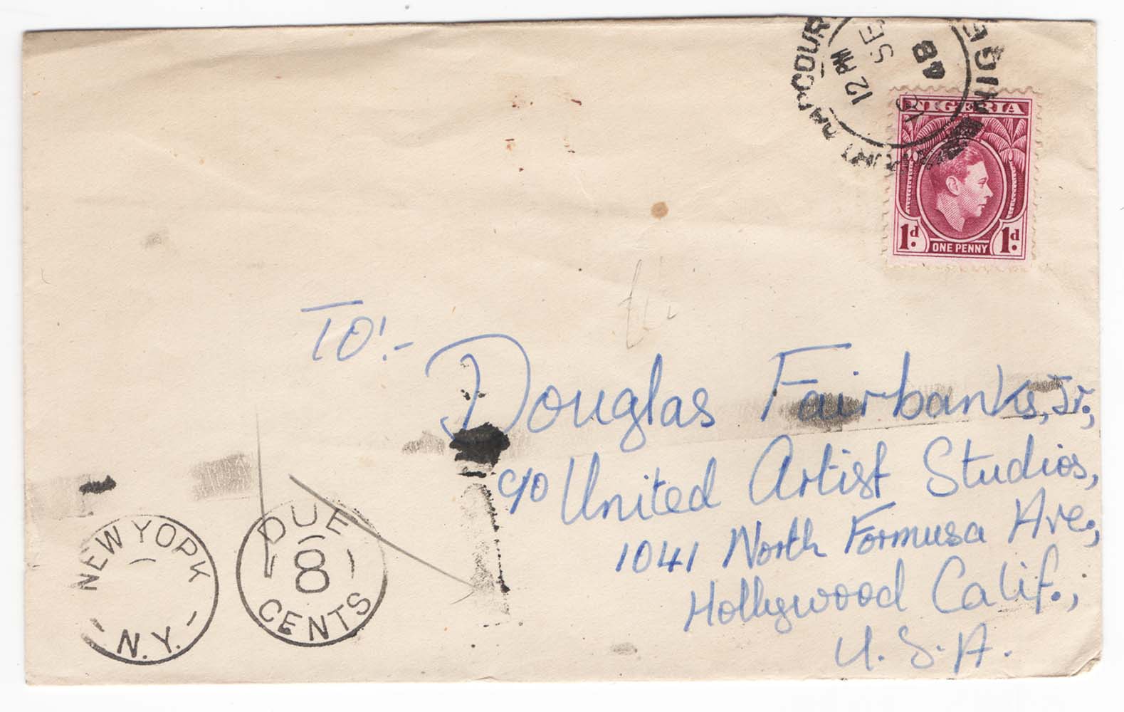 Nigeria 1948 Underpaid cover franked 1d to Hollywood addressed to Douglas Fairbanks Jr, fine New York 8c Due charge markings