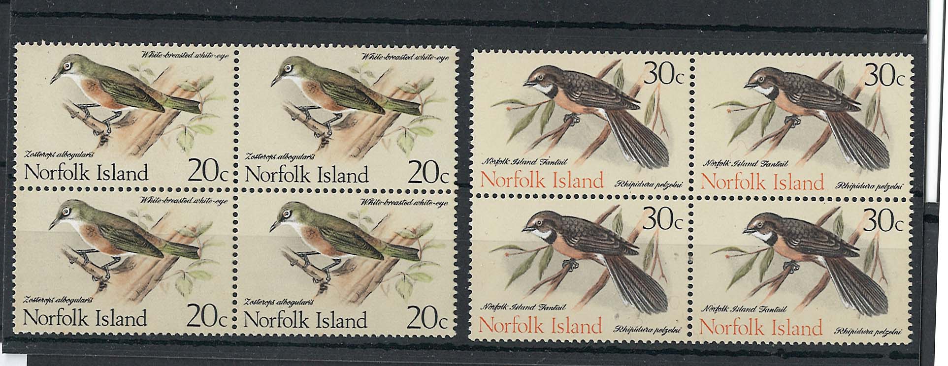Norfolk Is 1970 20c, 30c Birds sg112, 114 unmounted mint blocks 4 cat £68 [ref: 292/936 sa/4c2054]