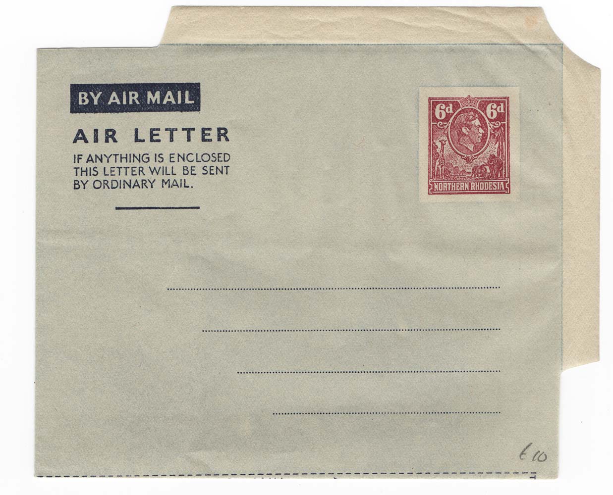 Northern Rhodesia 1952 KG6 6d airletter fine unused