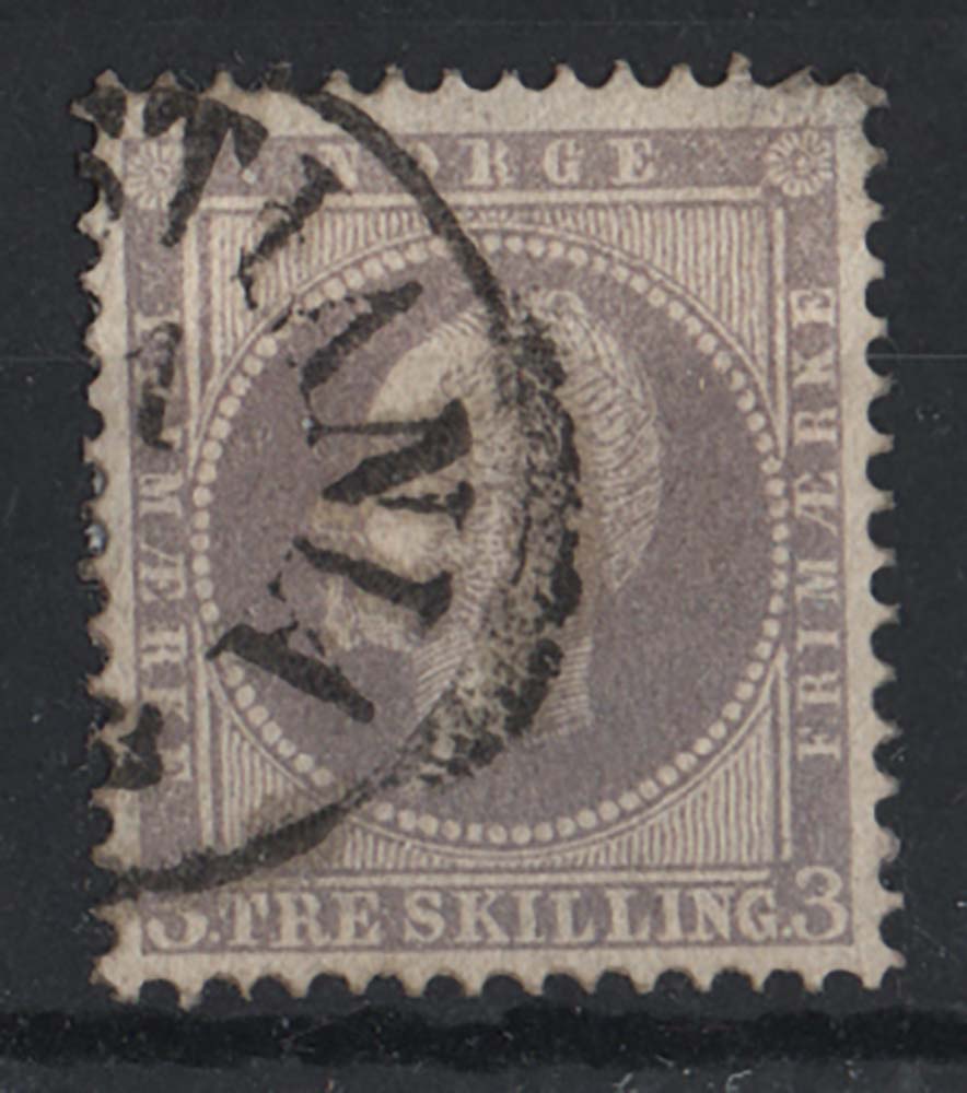 Norway 1856 3sk lilac fine used sg6 cat £110 [ref: 292/937 saD/6g0881]
