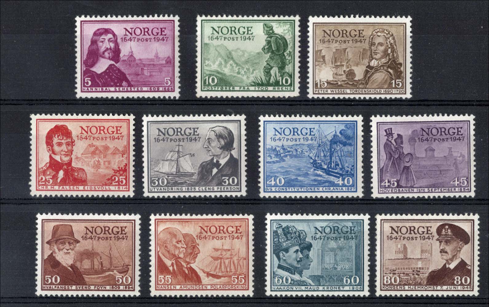 Norway 1947 Norwegian Post Office set of 11 vf mint sg384-94 c£42