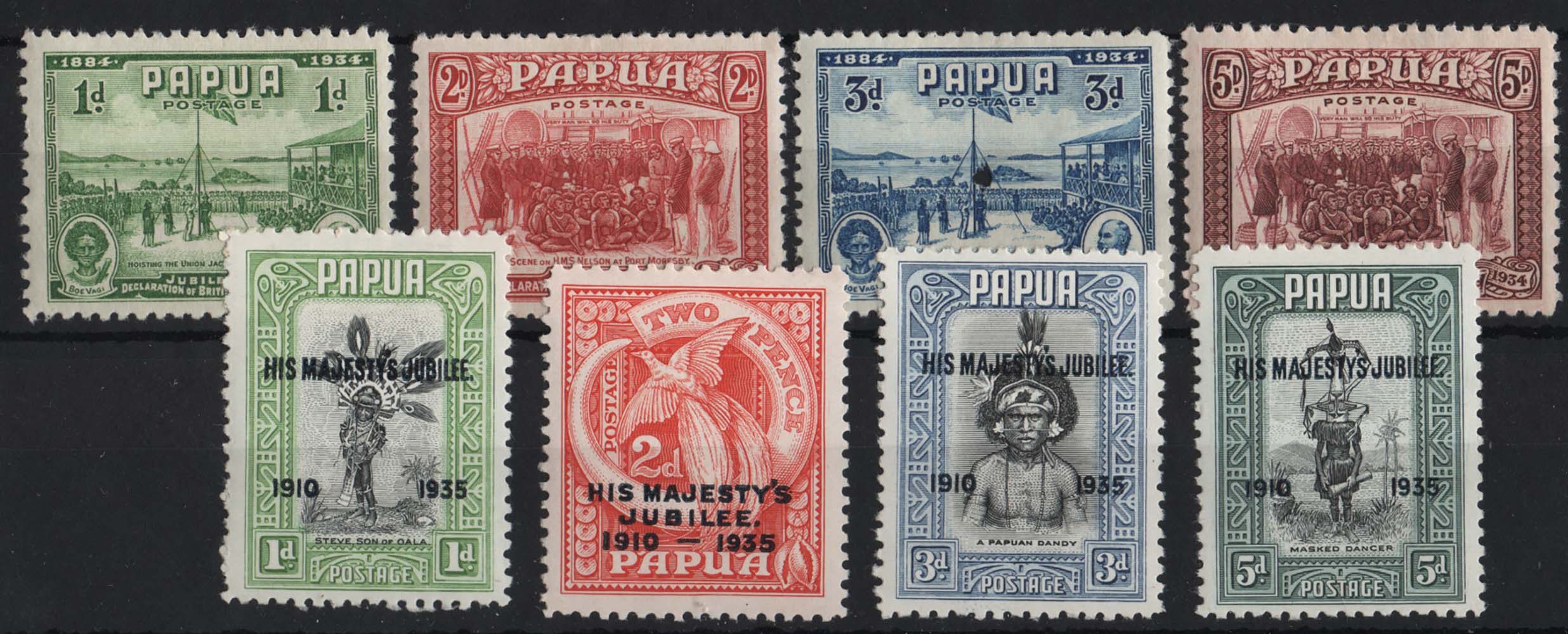 Papua 1935 Silver Jubilee set vf mint, also 1934 50th Anniv set (3d faulty) sg146-53 c£40 [ref 287bb2211/sa/9y0335]