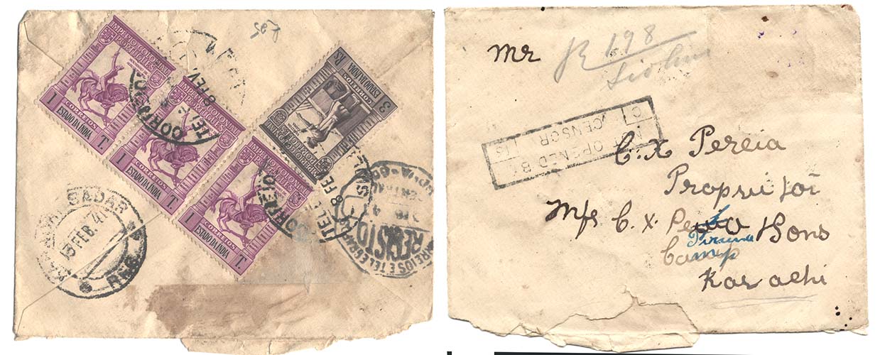 Portuguese India 1941 Censored reg cover to Karachi, franked 4 pictorials, [ref: 292/967 sD/9c0286]