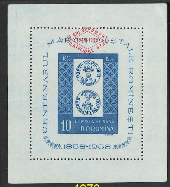 Romania 1959 10th Anniversary of State Philatelic Services m/sheet, sg2632 um c£225 [ref 287bb2256/sa/i35641]