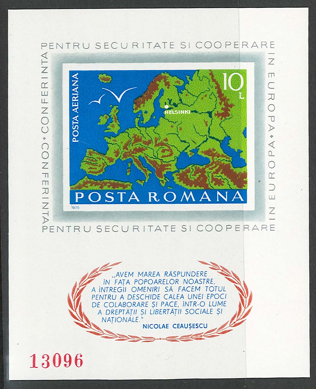 Romania 1975 European & Security Co-operation Conference scarce imperf MS MiBlock125 um c400DM