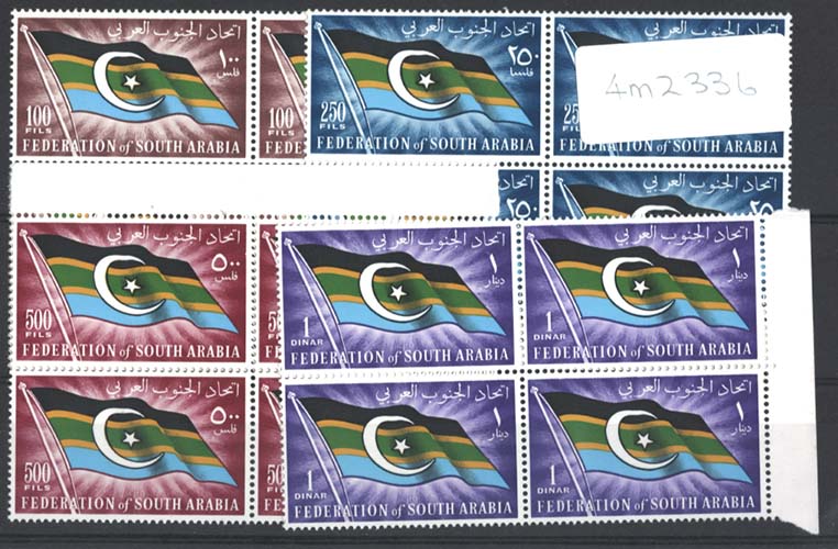 South Arabian Fed 1965 100f – 1d sg13-6 unmounted mint blocks of 4 cat £110 [ref: 292/1024 saD/4m2336]