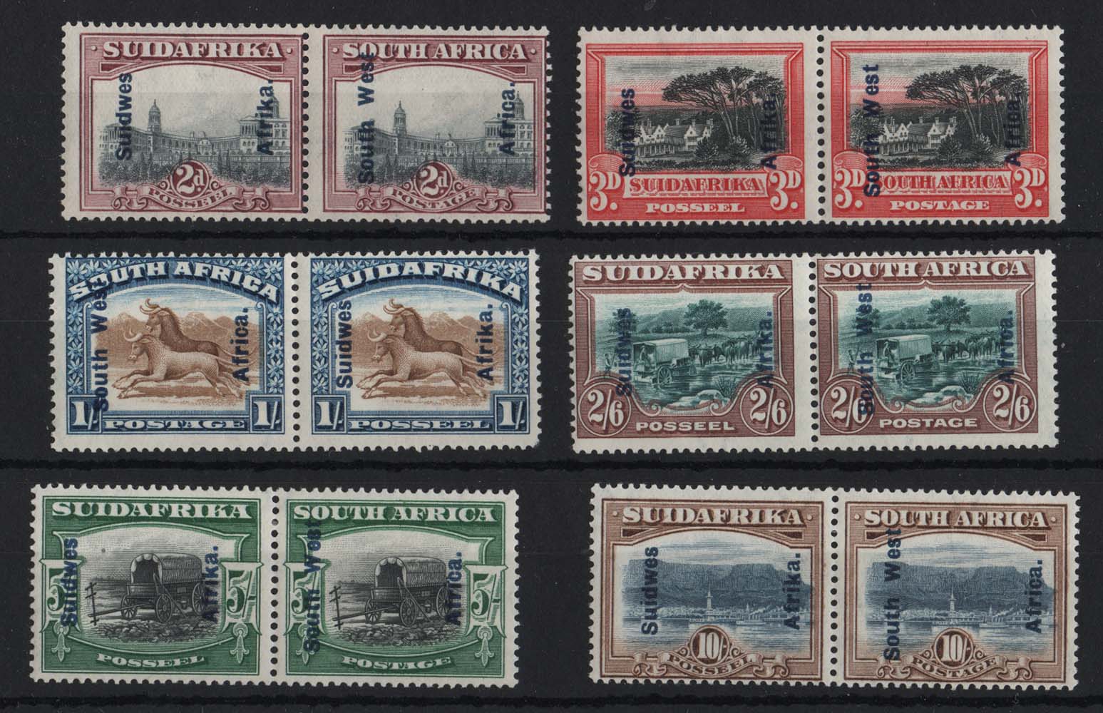 South West Africa 1927 2d – 10s set in vf mint horiz pairs sg49-54 c£190 [ref 287bb2350/sa/9y0279]