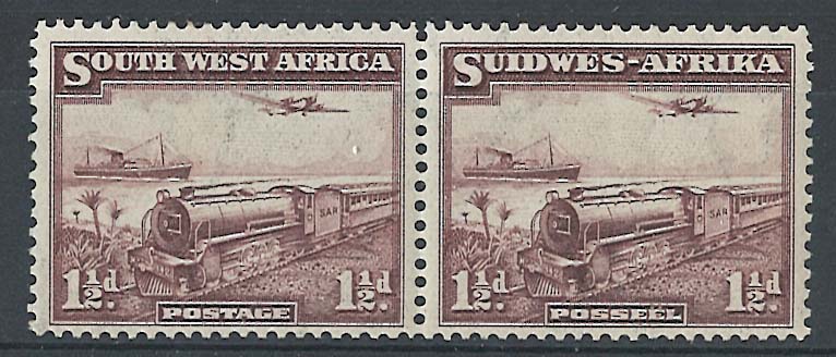 South West Africa 1937 1½d Mail Train sg96 f mint horizontal pair c£27 [ref 287bb2352/sa/z34429]