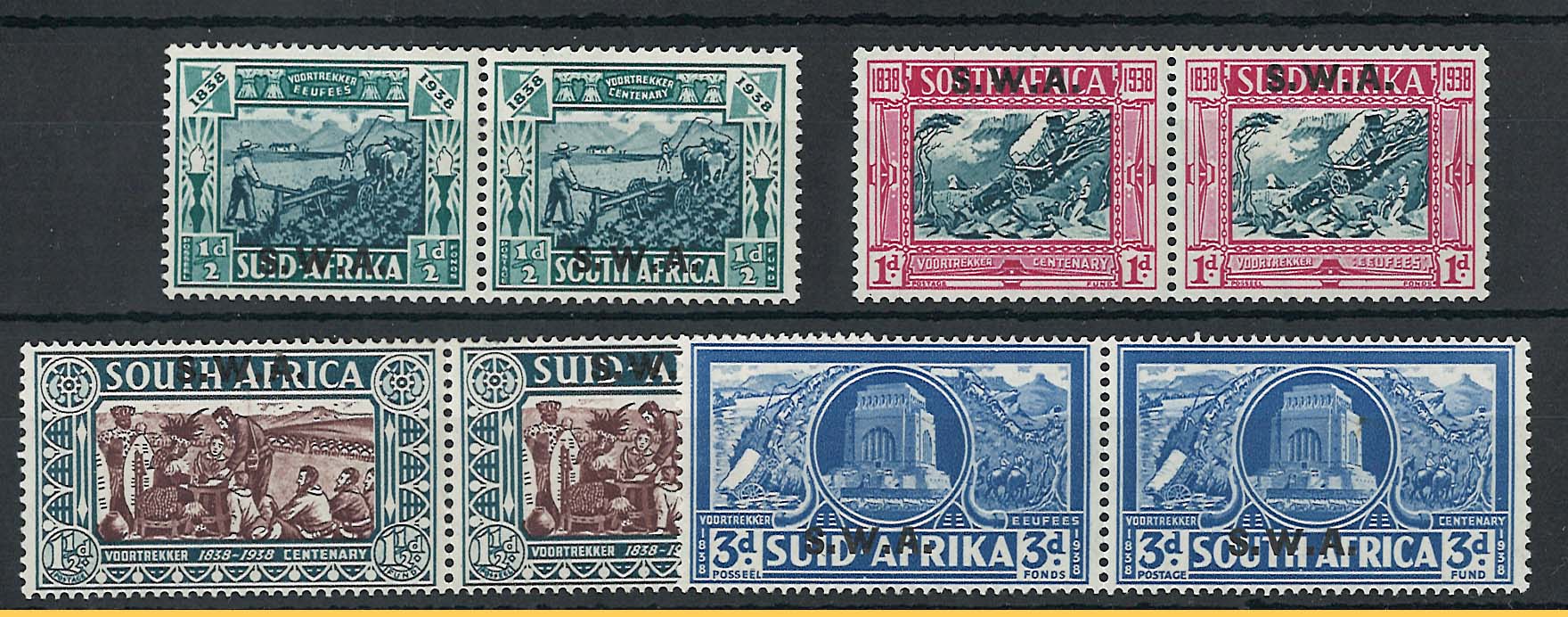 South West Africa 1938 Voortrekker Memorial set fine mint pairs sg105-8 c£110 [ref 287bb2354/sae/7u0575]