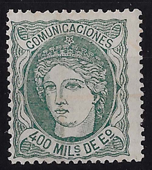 Spain 1870 Regent 400m green mint little or no gum sg180 c£350 [ref 2742838/sae/8e1145]