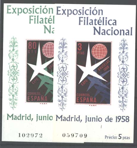 Spain 1958 Philatelic Exhibition m/sheets sg1285-6 unmounted mint cat £80