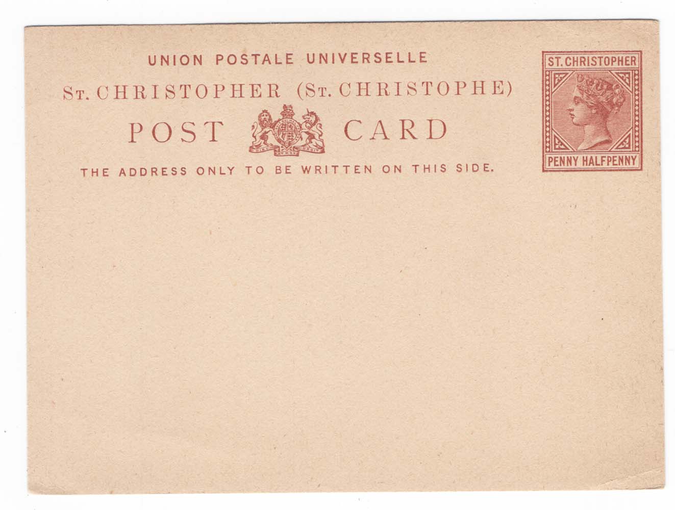 St Christopher 1879 Postal card 1½d brown on buff, 122x87mm, fine unused [ref 287bb2368/bstr/9w1095]