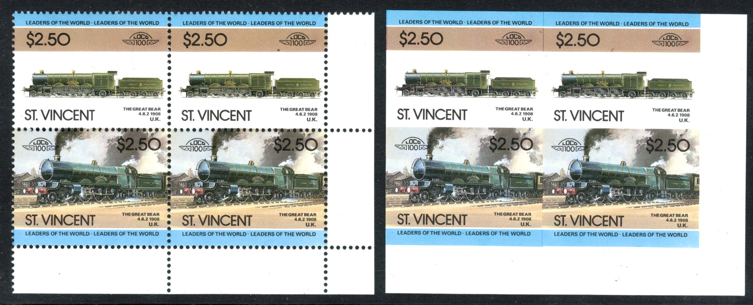 St Vincent Railway $2.50 imperf block of 4 unmounted mint with matching normal block [ref ebay/1186-a31 e4047]