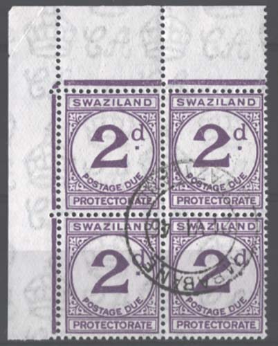 Swaziland 1946 2d P Due on rough paper vfu cto blk 4, Mbabane cds 21.6.46, revises issue date