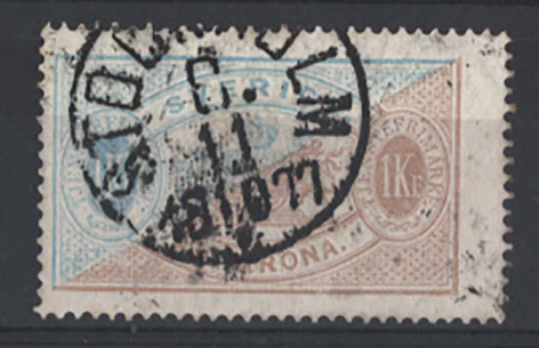 Sweden 1874 1k Official die I perf 14 fine used sgO41 cat £95 8o0989 273sa Europe [ref: 292/1066 saD/8o0989]