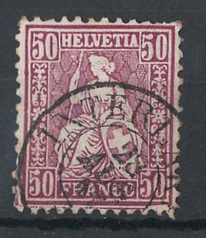 Switzerland 1867 Sitting Helvetia 50c purple, bottom frame & corner doubled, fine used cds, small imperfections sg67var [ref: 292/1073 saD/6y0612]