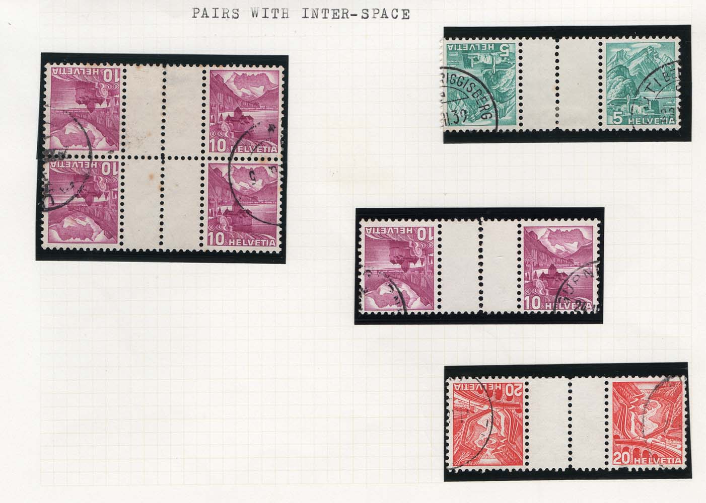 Switzerland 1934 Views 5c, 10c, 20c interpanneau tête-bêche pairs vfu, ditto 10c blk of 4