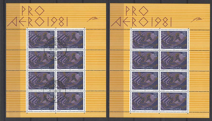 Switzerland 1981 Swiss Air 50th Anniv sheetlet of 8 unmounted mint sg1007, ditto very fine used cat £74 as singles [ref: 292/1089 lD/8q0821]