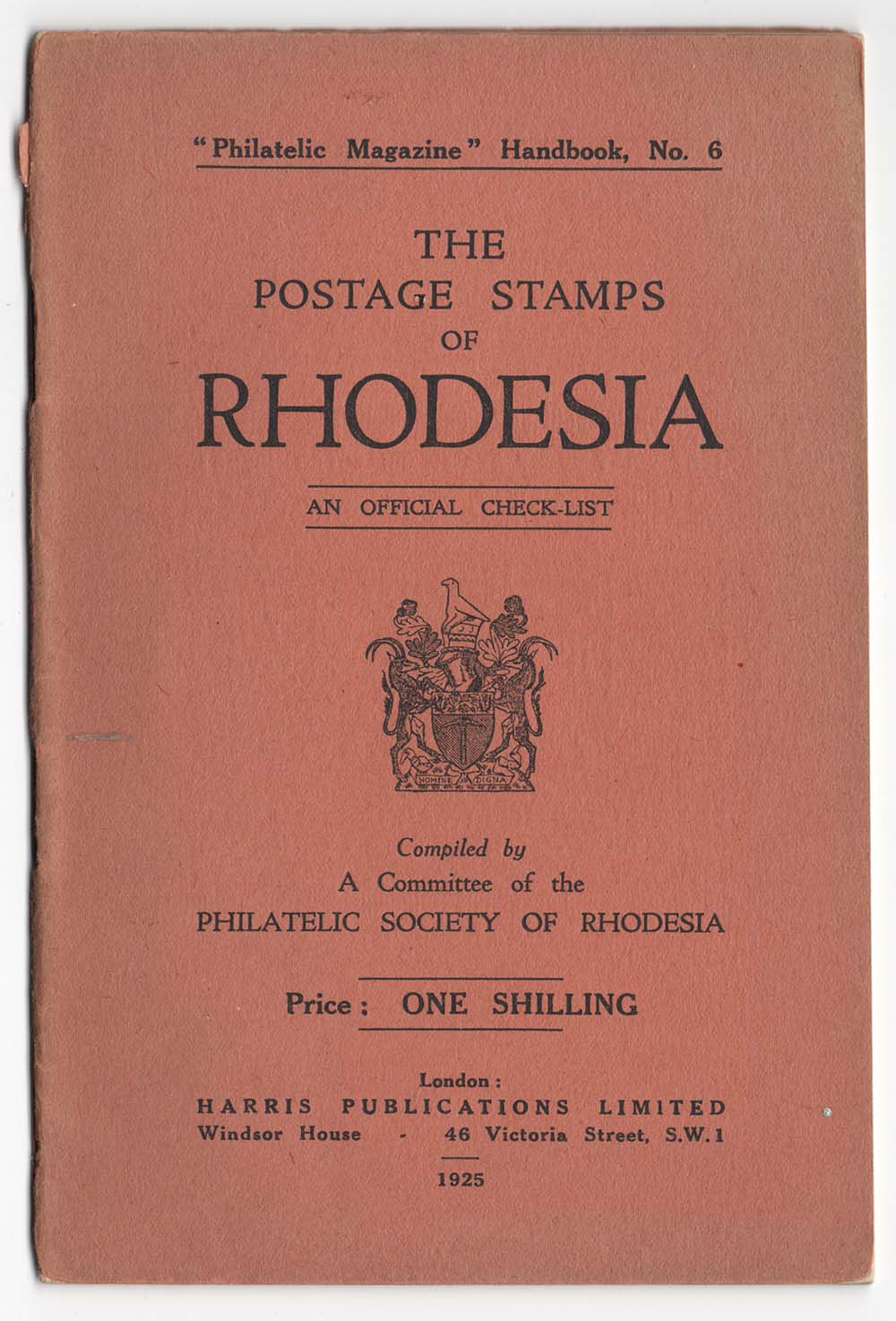 The Postage Stamps of Rhodesia, compiled by the Philatelic Society of Rhodesia, 1925, 28 pages. Back cover loose, but rare book.
