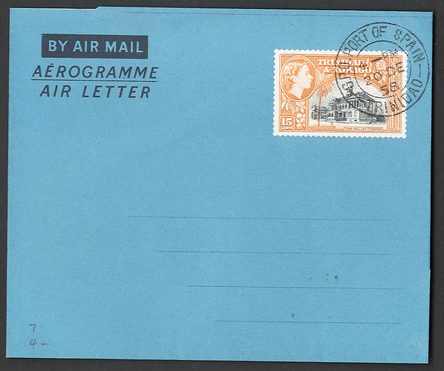 Trinidad & Tobago 1958 15c Airletter very fine used first day cancel – fine [ref ebay/1164-a14 4k2168]