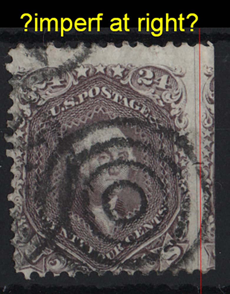 USA 1861 Washington 24c sg74 fu VARIETY straddled margin showing part of stamp from right pane c£350 as normal