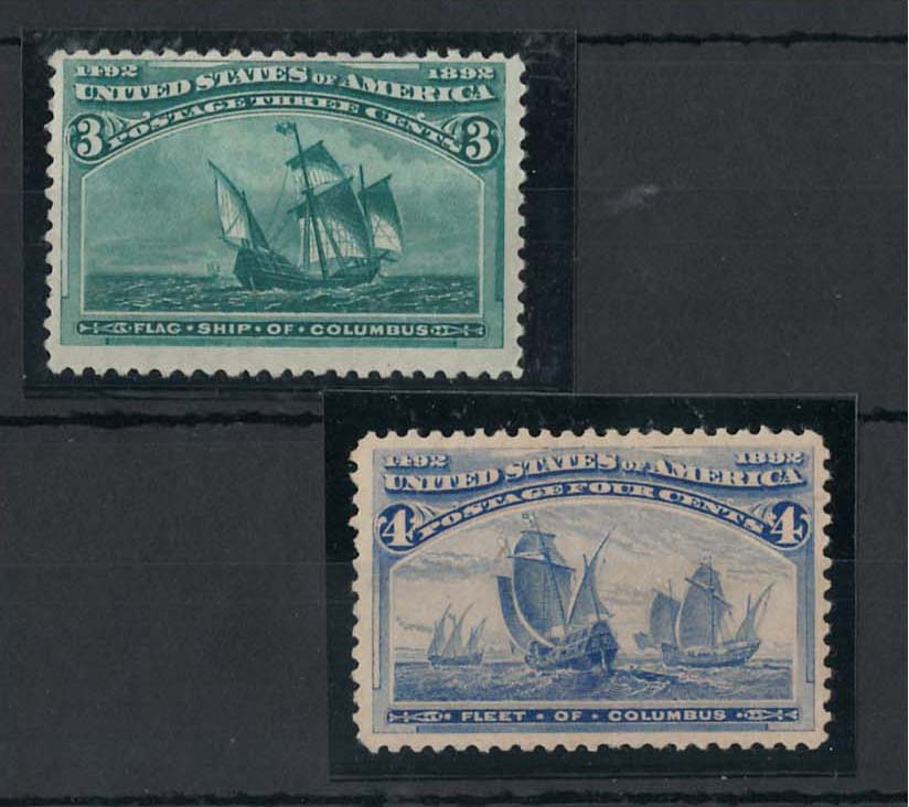 USA 1893 Columbus 3c green 4c blue vf mint Sc232-3 sg237-8 c£150