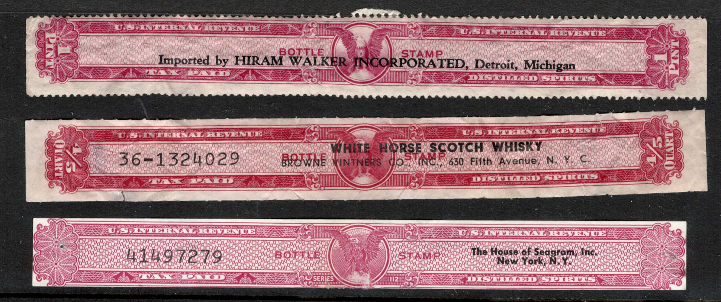 Revenues: Bottle Stamps 3 different: 1 pint, 4/5 quart and one without a specific measure. Small imperfections