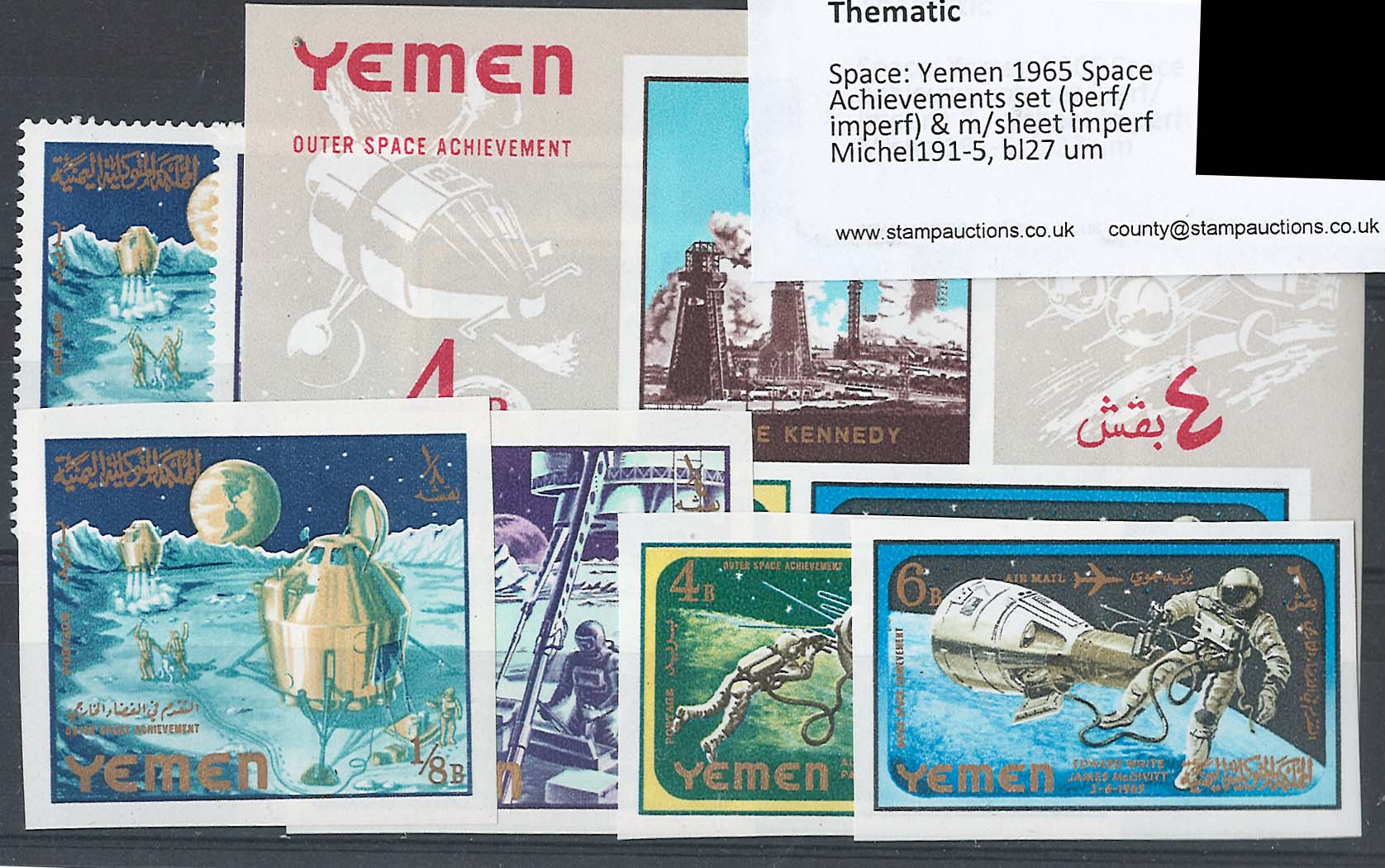 #1161 Yemen 1965 Space set (perf/imperf) & m/sheet imperf