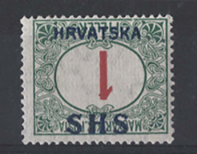 Yugoslavia 1918 HRVATSKA SHS ovpt INVERTED 1f postage due, as sgD85 um